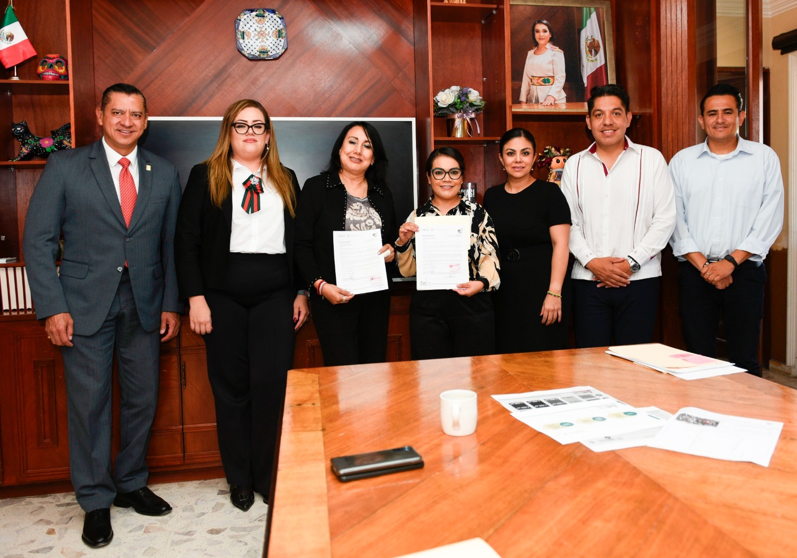 La presidenta municipal Cinthia Teniente Mendoza, el senador Emmanuel Reyes Carmona y el delegado del IMSS y titular del Órgano de Operación Administrativa Desconcentrada, Dr. Marco Antonio Hernández Carrillo, sostuvieron una reunión en Villagrán con el objetivo de analizar la posible inversión para la apertura de nuevas guarderías en el municipio, en beneficio de niñas, niños y familias villagranenses, firmando el compromiso para este proyecto.