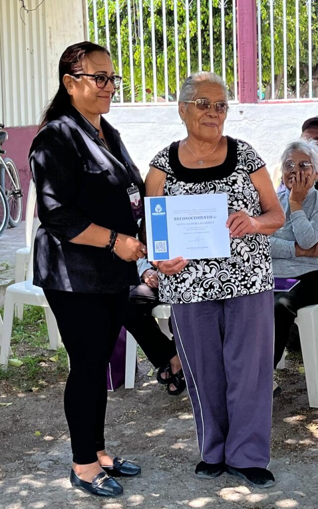 Este jueves uno de los talleres finalizó, y a los 35 participantes se les entregaron reconocimientos, a cargo de la directora del DIF, María de Jesús Rosales Cano y la instructora Ana Isabel Roque Subías.