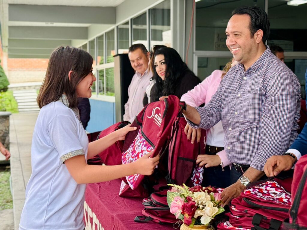Con el objetivo de apoyar la economía de las familias y garantizar que ningún estudiante se quede atrás por falta de recursos, el presidente municipal José Daniel Sámano Jiménez entregó 1,200 mochilas a alumnas y alumnos de secundaria en la cabecera municipal, como parte de la primera etapa de un programa que contempla más de 4,100 apoyos en este regreso a clases.