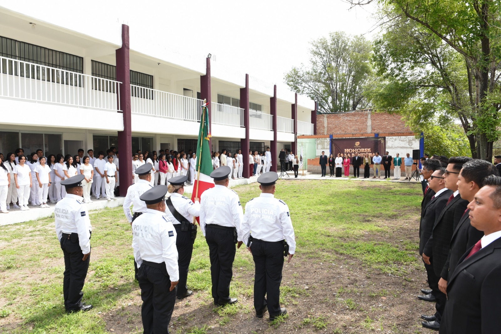 Al finalizar el acto cívico, el senador Emmanuel Reyes Carmona tomó la palabra y reconoció el liderazgo de la presidenta municipal Cinthia Teniente Mendoza y su compromiso con la educación, destacando su gestión para brindar instalaciones dignas.