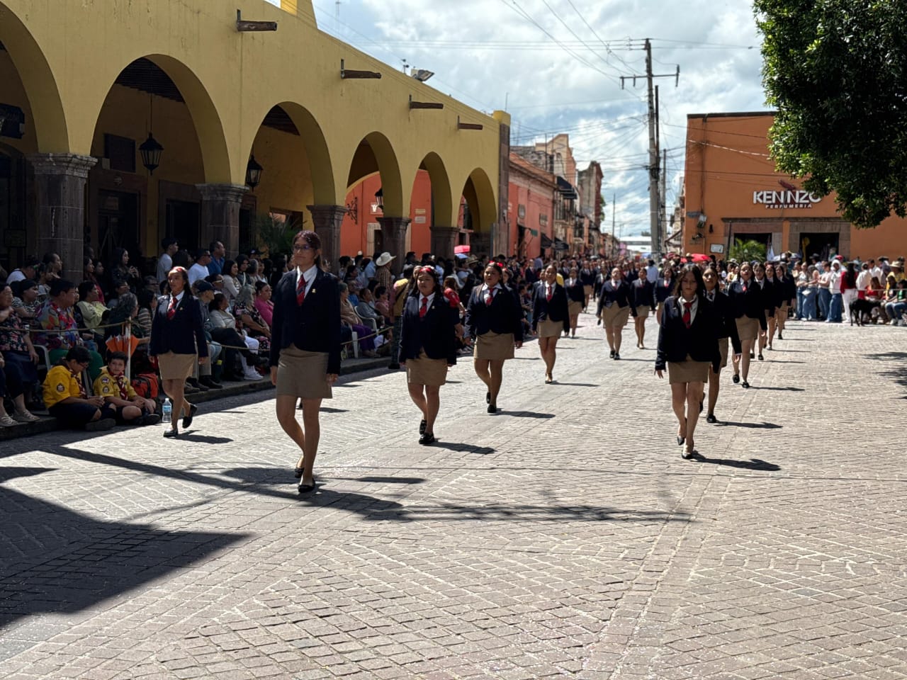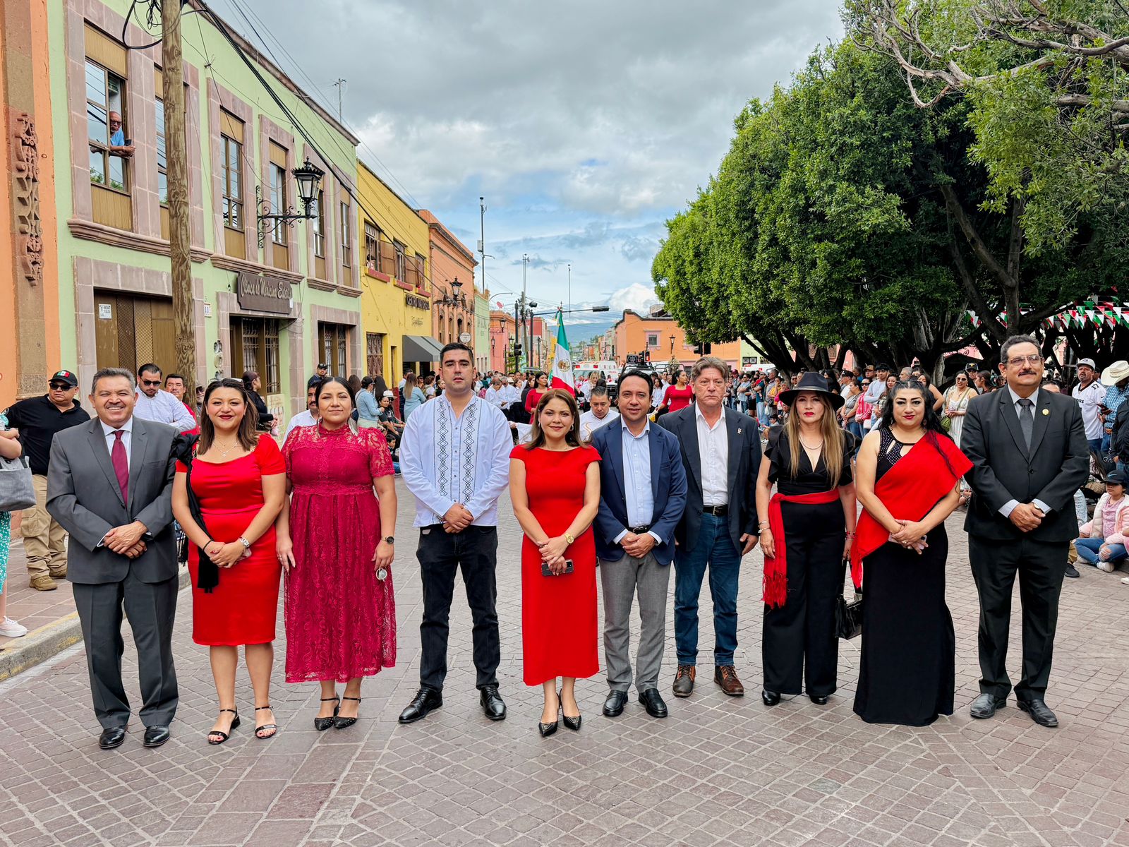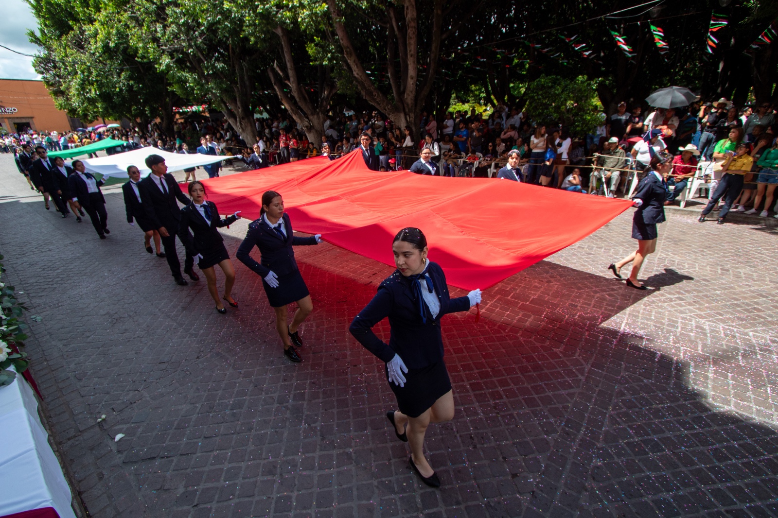 La columna cívica fue encabezada por el presidente Municipal, José Daniel Sámano Jiménez y su esposa, la presidenta del DIF, María Teresa Cerca Rosas; la síndica, Marisol Alvarado Barrera; las regidoras Rosa Elvira López Jiménez, Nancy López Montes y María Isabel Contreras Ramírez; los regidores Rafael García del Horno, Javier Cardoso López y Jorge Alfonso Villaseñor Ruíz; así como las y los titulares de las áreas de la administración, quienes al arribar al Palacio Municipal, recibieron al resto de los contingentes participantes.