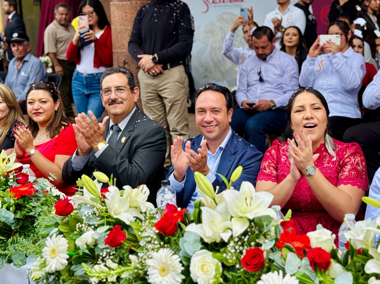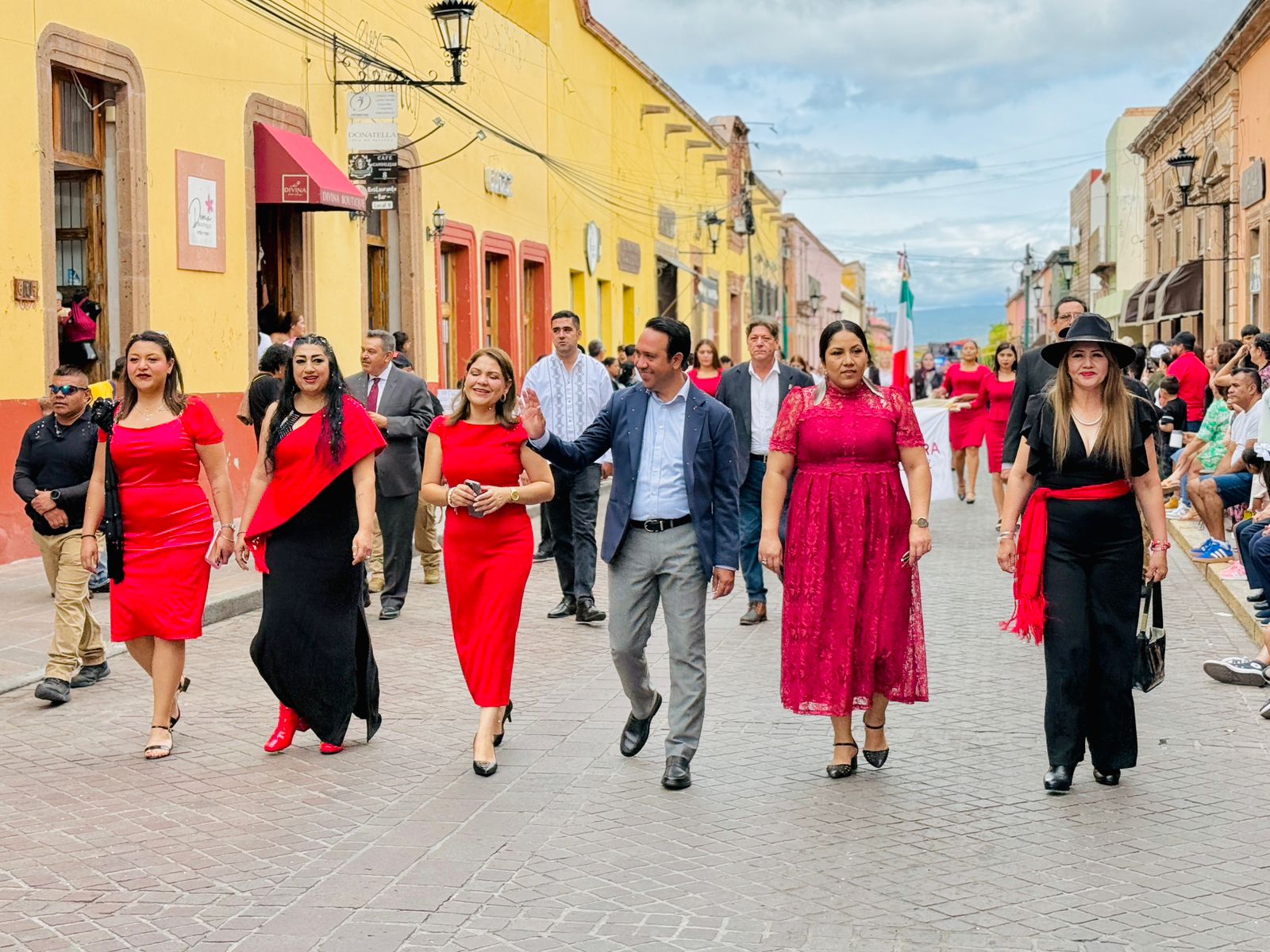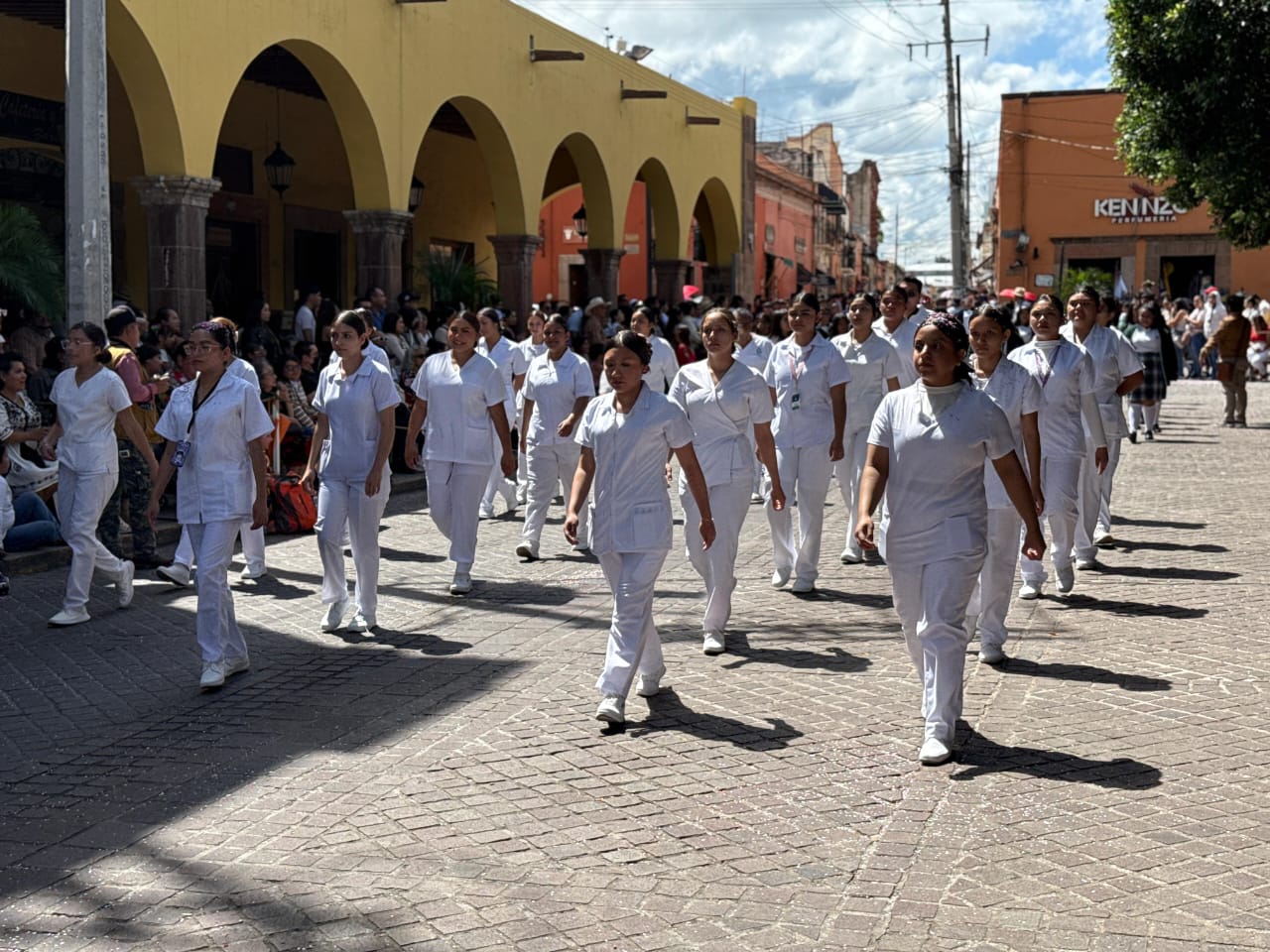 La columna cívica fue encabezada por el presidente Municipal, José Daniel Sámano Jiménez y su esposa, la presidenta del DIF, María Teresa Cerca Rosas; la síndica, Marisol Alvarado Barrera; las regidoras Rosa Elvira López Jiménez, Nancy López Montes y María Isabel Contreras Ramírez; los regidores Rafael García del Horno, Javier Cardoso López y Jorge Alfonso Villaseñor Ruíz; así como las y los titulares de las áreas de la administración, quienes al arribar al Palacio Municipal, recibieron al resto de los contingentes participantes.