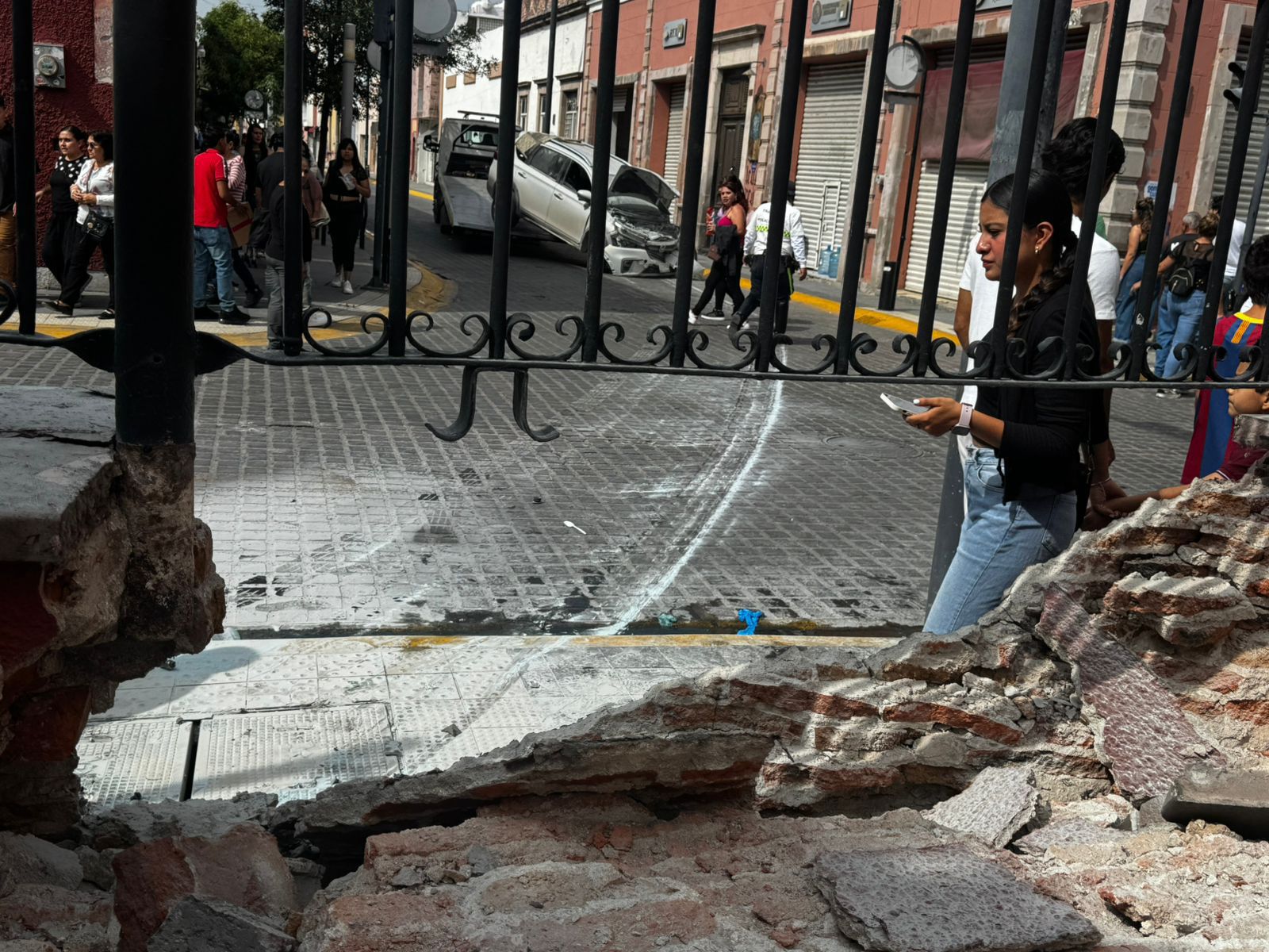Un vehículo derribó parte de la pared protectora del templo de Catedral en el Centro de la ciudad de Celaya.