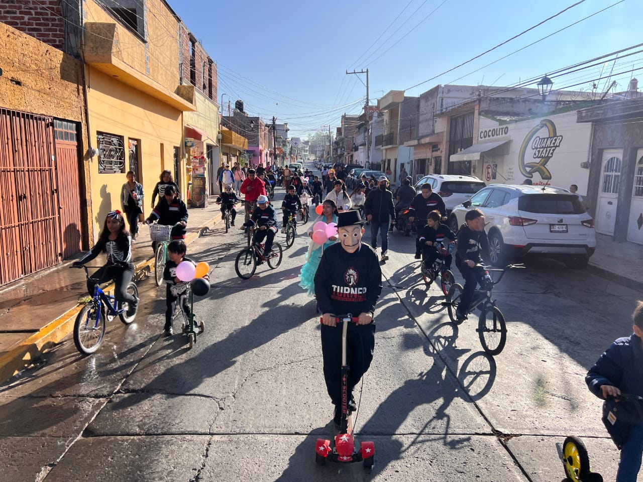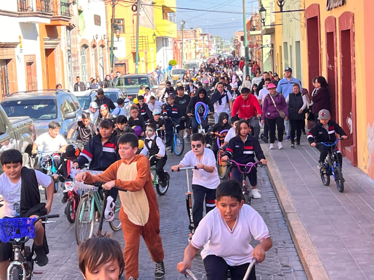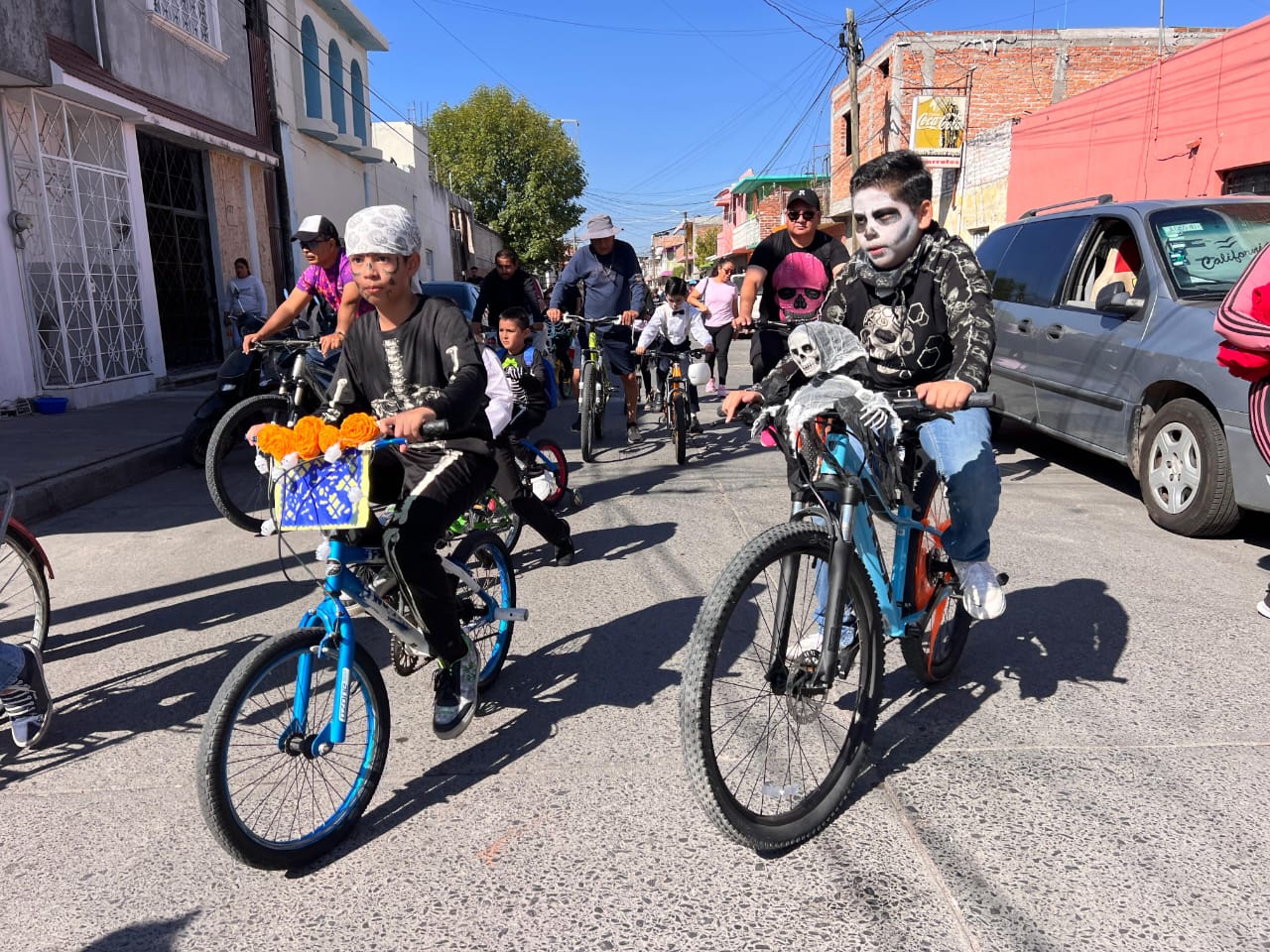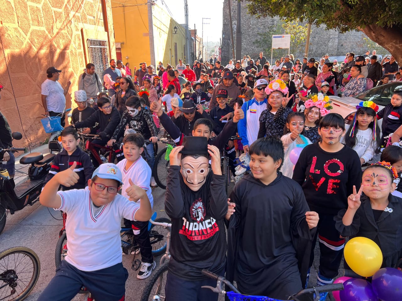 Como parte de las actividades del Festival de las Almas, más de 200 niñas y niños caracterizados de catrines y catrinas, y otros disfraces alusivos al día de muertos, participaron en un recorrido ciclista por las principales calles de la ciudad, donde además disfrutaron de la narración de leyendas locales en distintos puntos del trayecto.