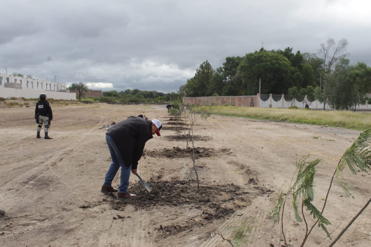 La jornada se llevó a cabo en coordinación con los regidores Arianna Cuevas Tovar, José Luis Medina Guapo y Martha Erika Guerrero, así como con la Dirección de Ecología y Ordenamiento Territorial, quienes previamente realizaron labores de limpieza y preparación del terreno.