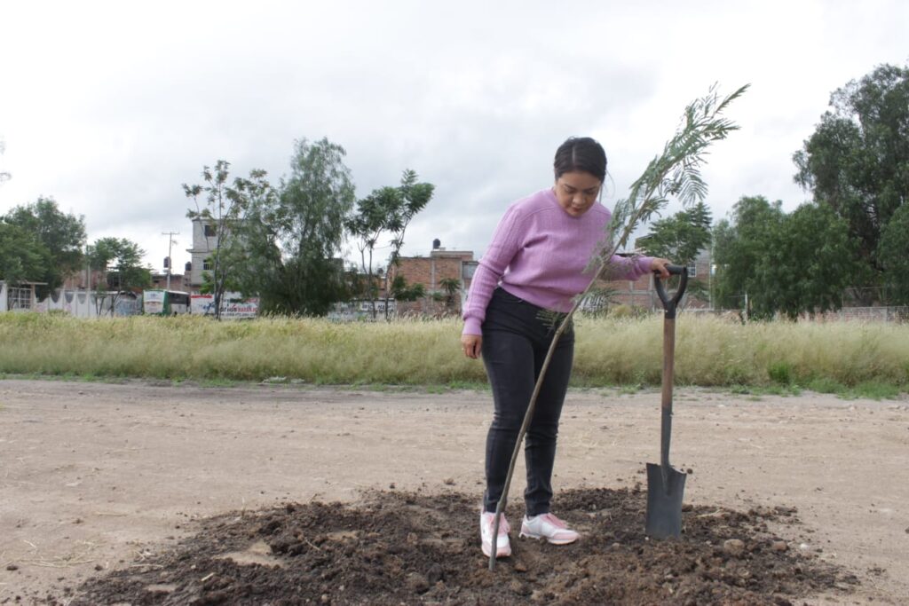 Acompañada por directoras, directores y regidores del Ayuntamiento, la presidenta participó activamente en la plantación de árboles junto a vecinos de la zona. La empresa AutoZone realizó la donación de 120 árboles de la especie Tepehuaje, de los cuales 100 fueron plantados con éxito en el área. El Tepehuaje es un árbol nativo de México que puede alcanzar hasta 20 metros de altura, ideal para fortalecer los pulmones verdes del municipio.