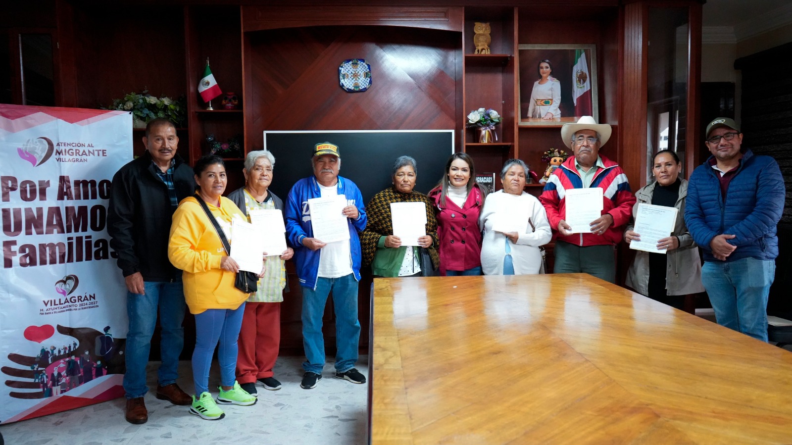 Como parte del programa “Por Amor Unamos Familias”, la presidenta Cinthia Teniente Mendoza, en conjunto con la Jefatura de Atención al Migrante, dirigida por Armando López Álvarez, realizó la entrega de ocho paquetes de documentos correspondientes al trámite de visa estadounidense.