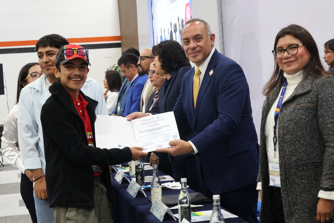 El equipo ganador de la etapa regional de la Cumbre Nacional de Desarrollo Tecnológico, Emprendimiento e Innovación (InnovaTecNM 2025) está conformado por las y los alumnos Kyara Yomeli Hurtado Carmona y Ana Elisa Rangel Nájera, Jesús Antonio Carreño Sánchez, Juan Jarol Escamilla Sánchez, y Joel Isaí Sánchez Juárez, quienes fueron asesorados por el Maestro en Ciencias de la Ingeniería, Alejandro Tapia Muñoz y el técnico José Antonio Navarrete Zavala.