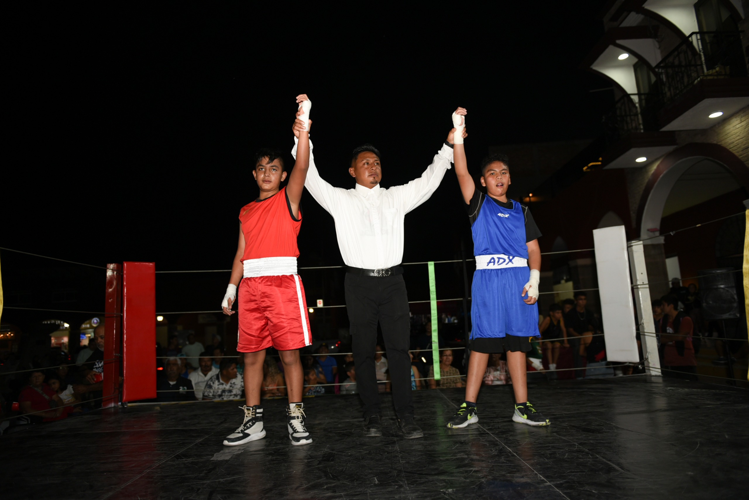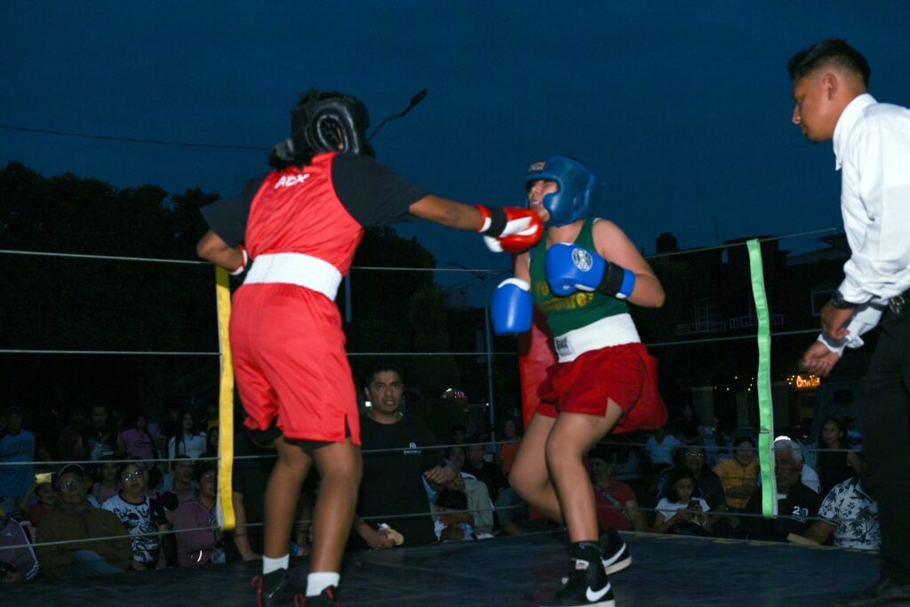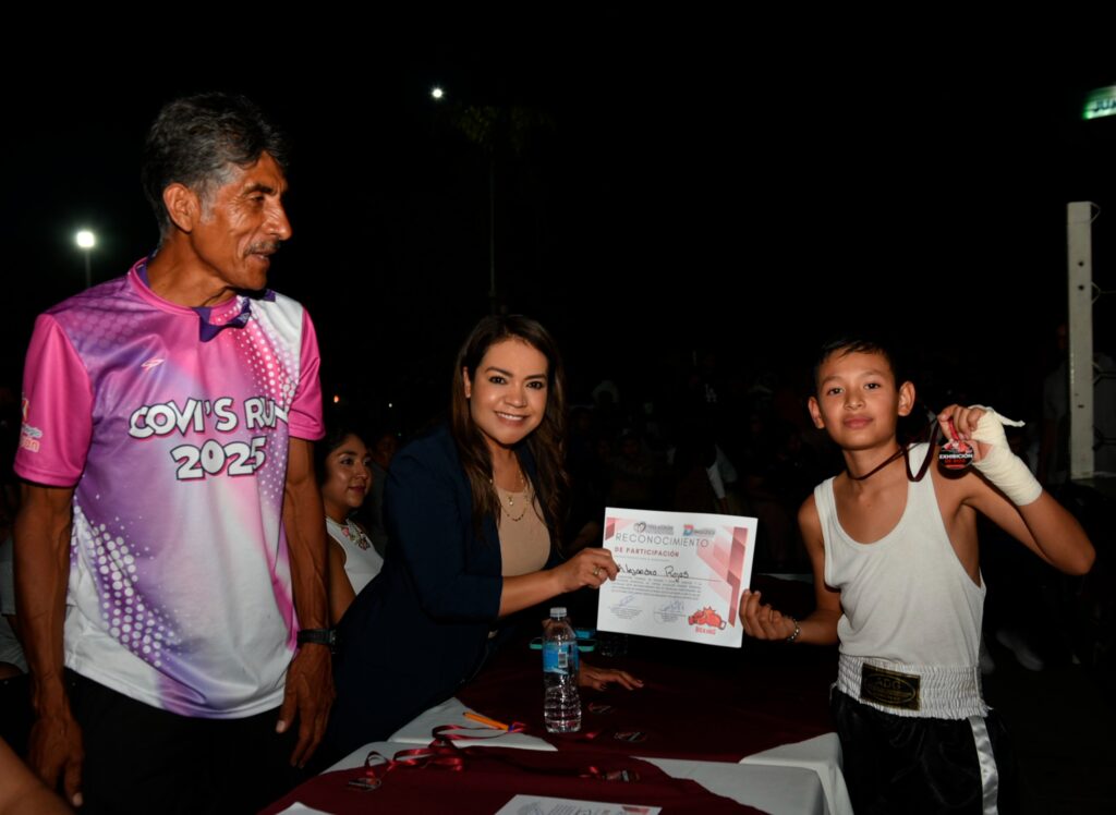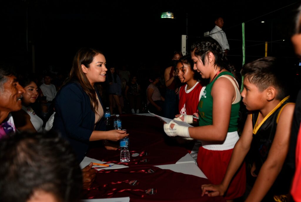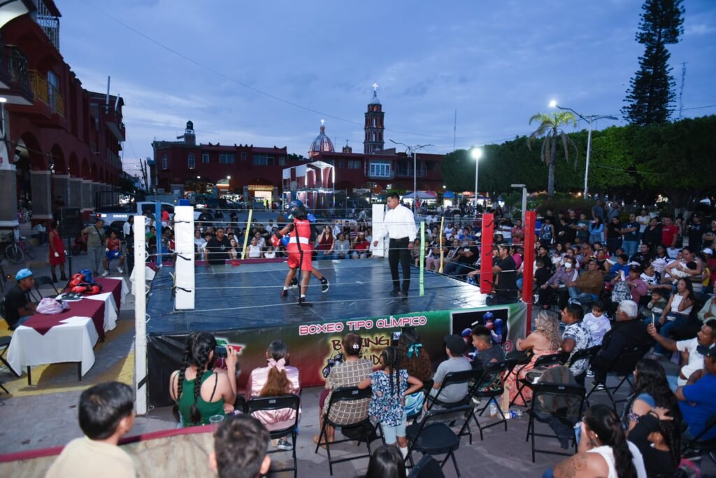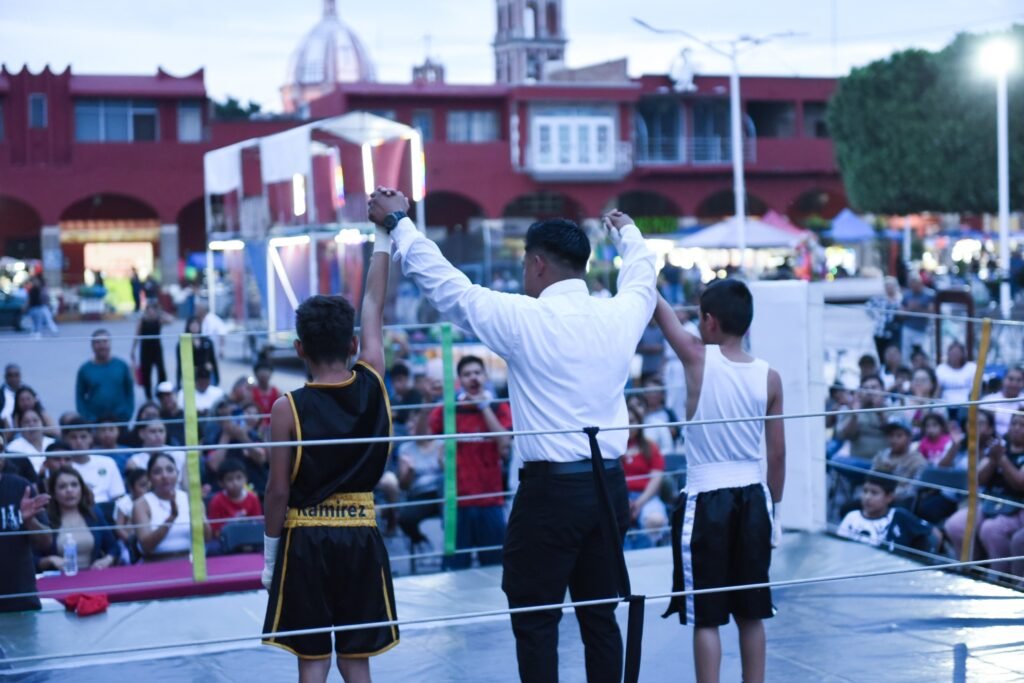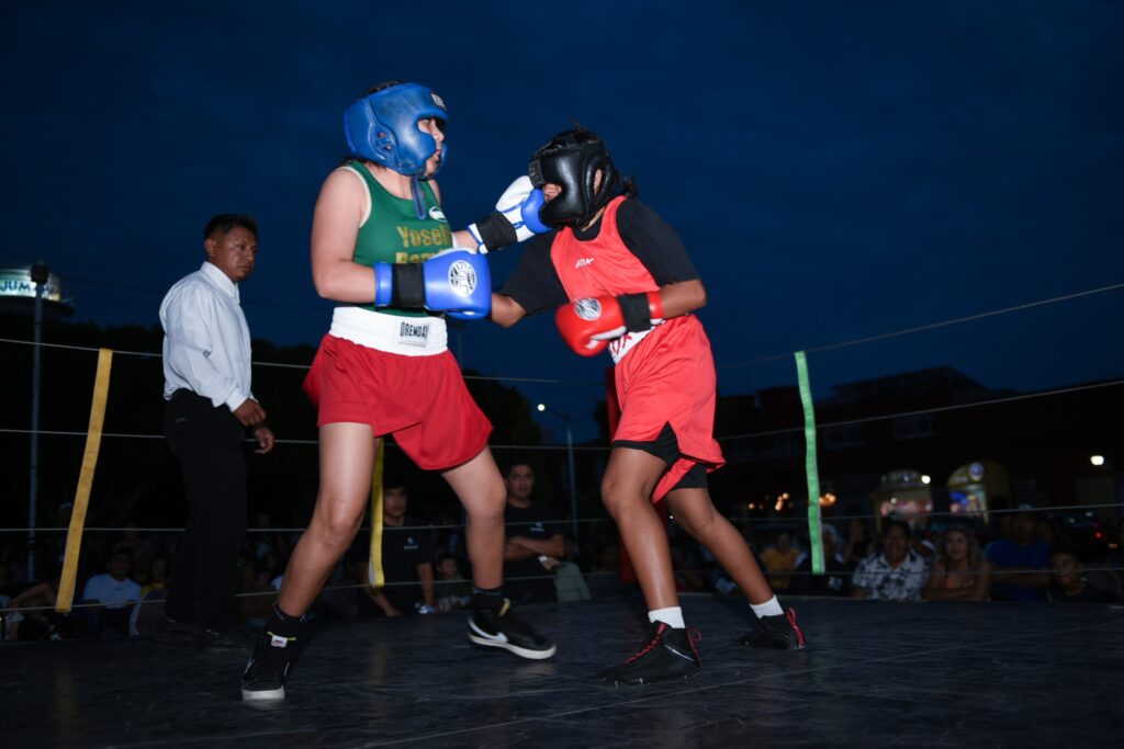 Con el objetivo de impulsar espacios de sano esparcimiento, reconocer el talento deportivo local y motivar a niñas, niños y jóvenes a continuar en el camino del deporte, especialmente en actividades como el boxeo, que requieren disciplina, constancia y esfuerzo, se llevó a cabo una exhibición de box, donde fue invitada la presidenta Cinthia Teniente y el titular de la Dirección de Deporte, Francisco Javier Hernández Cano.