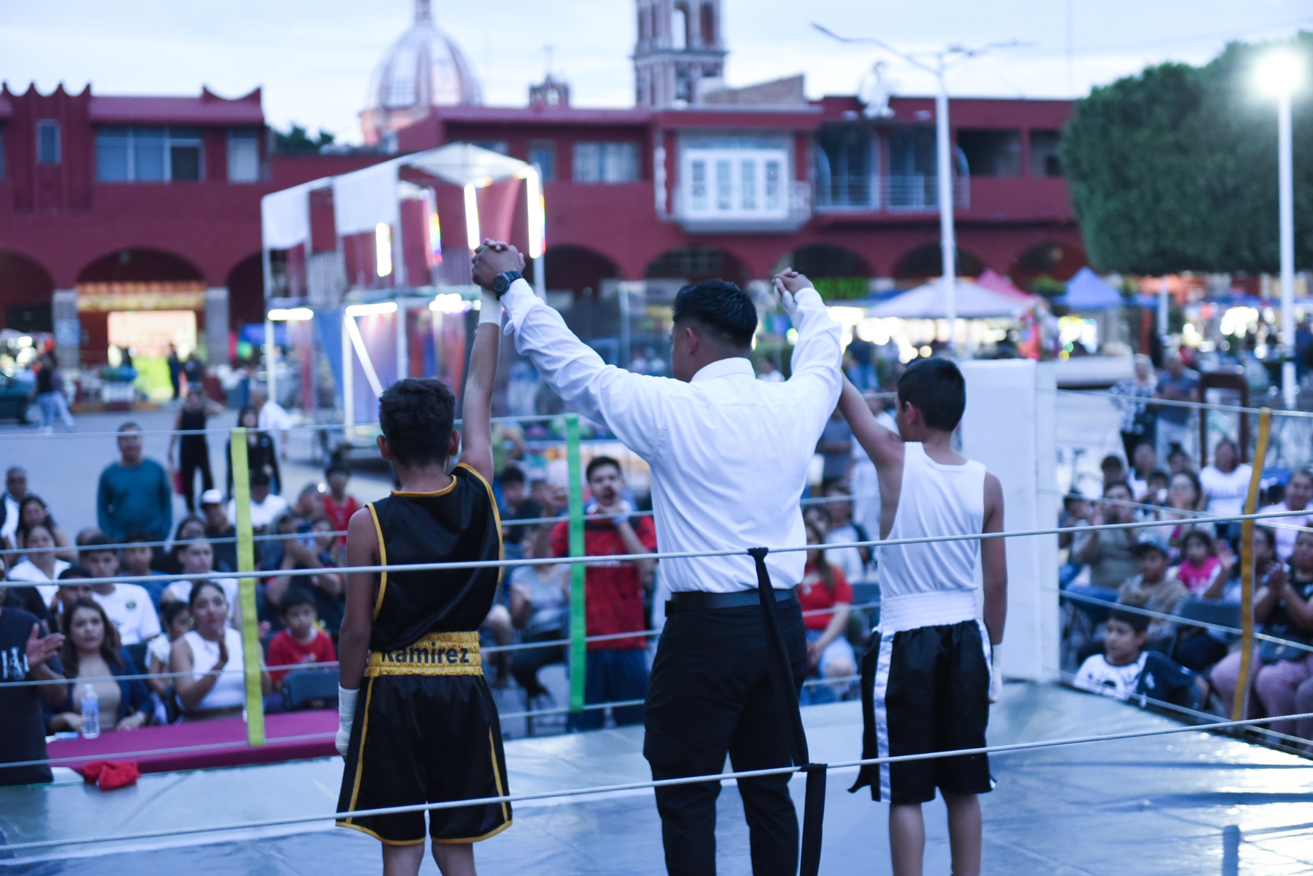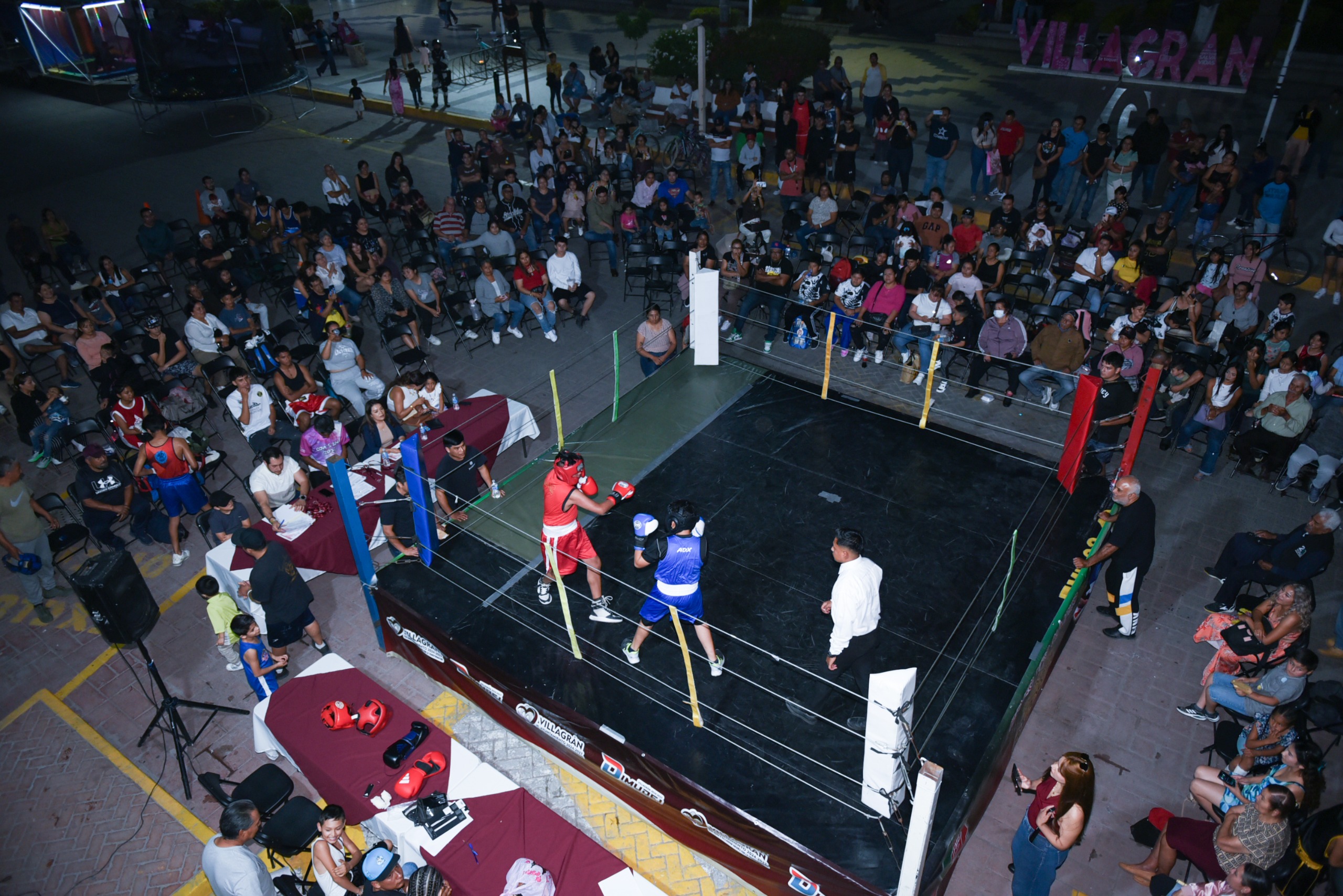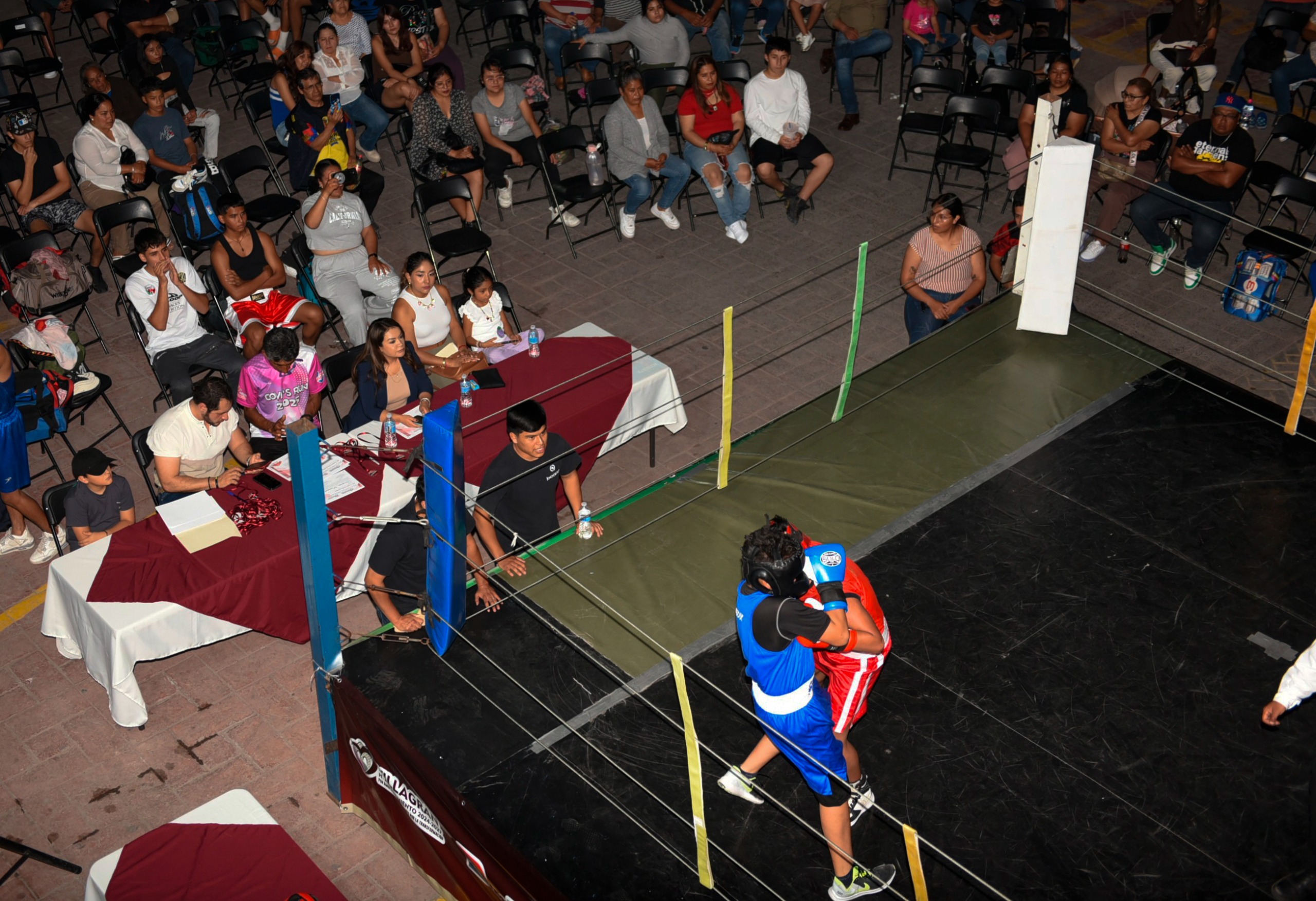 Con el objetivo de impulsar espacios de sano esparcimiento, reconocer el talento deportivo local y motivar a niñas, niños y jóvenes a continuar en el camino del deporte, especialmente en actividades como el boxeo, que requieren disciplina, constancia y esfuerzo, se llevó a cabo una exhibición de box, donde fue invitada la presidenta Cinthia Teniente y el titular de la Dirección de Deporte, Francisco Javier Hernández Cano.