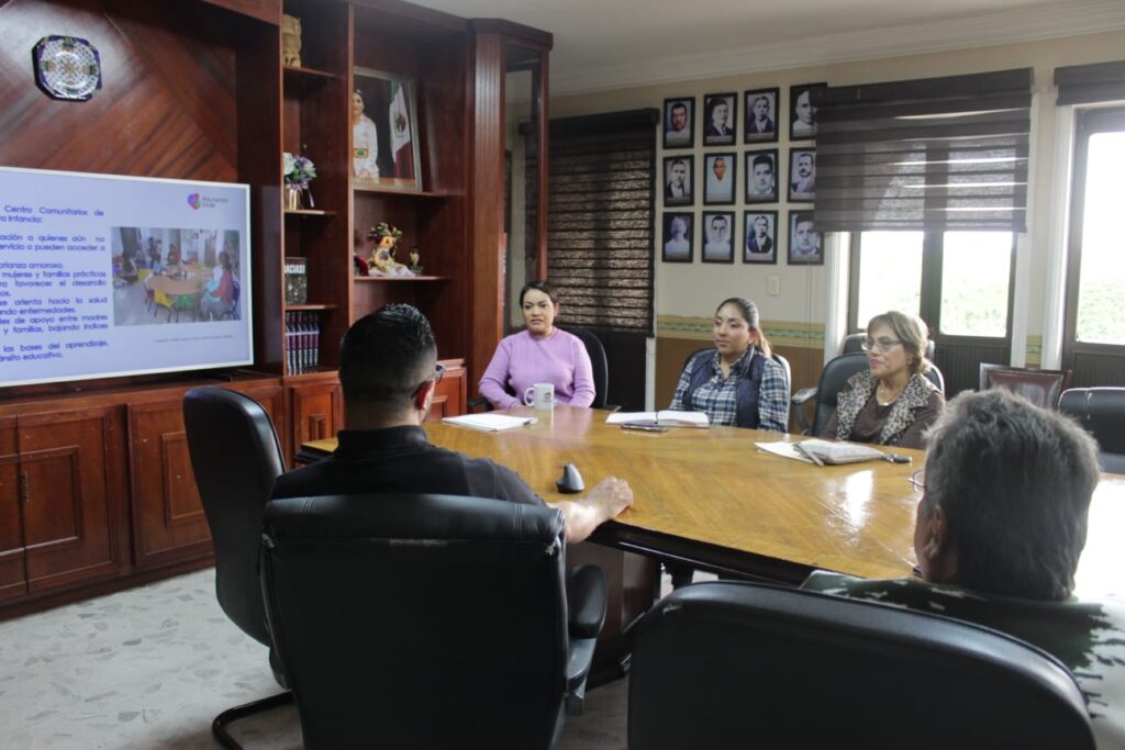 La presidenta municipal Cinthia Teniente sostuvo una reunión con el jefe de Seguridad Educativa de la Delegación Regional, Marco Soto Díaz y el jefe de la USAE, Javier González Pitayo con el propósito de revisar la propuesta para la expansión de la educación inicial no escolarizada en Villagrán.