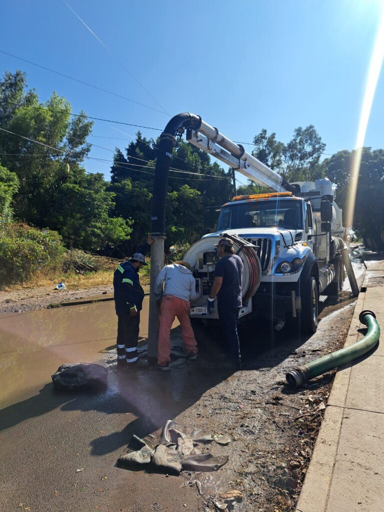 También se contó con el apoyo de una pipa y personal adicional para reforzar las labores, lo que permitió controlar la fuga de manera efectiva. A partir de estas acciones, se ha iniciado un proceso de monitoreo continuo para verificar que el problema haya sido completamente corregido y garantizar el buen funcionamiento de la red de drenaje en la zona.