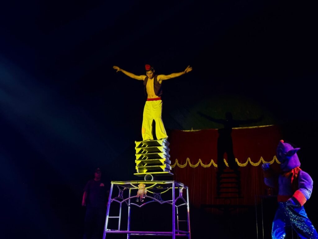 La función incluyó el tradicional show de payasos, acrobacias aéreas en aro y la participación destacada de dos artistas infantiles, quienes sorprendieron con su destreza en escena. Una de ellas, reconocida como la artista más joven del espectáculo, cuenta con apenas 10 años de edad y ya forma parte activa del elenco circense, demostrando que el talento no tiene edad.