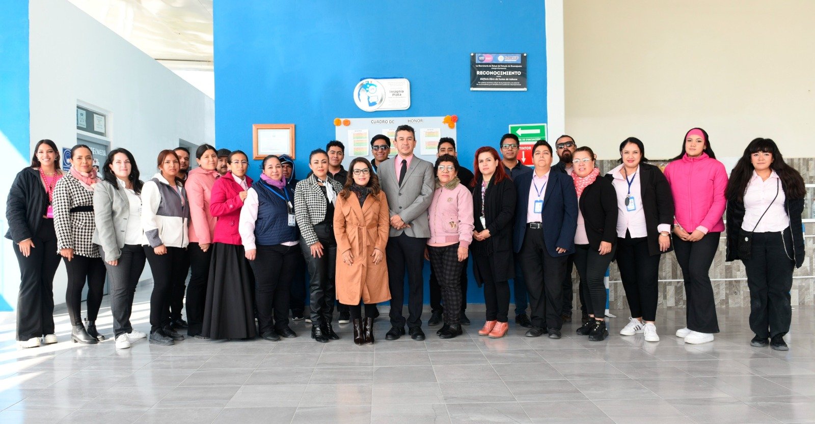 La presidenta municipal Cinthia Teniente Mendoza visitó esta mañana el plantel CECyTE Xonotli, donde convivió con alumnas, alumnos, docentes y personal administrativo, además de participar en los honores a la Bandera Nacional acompañada de la secretaria del Ayuntamiento Jazmín Carmona Cornejo, directoras y directores de distintas áreas municipales.