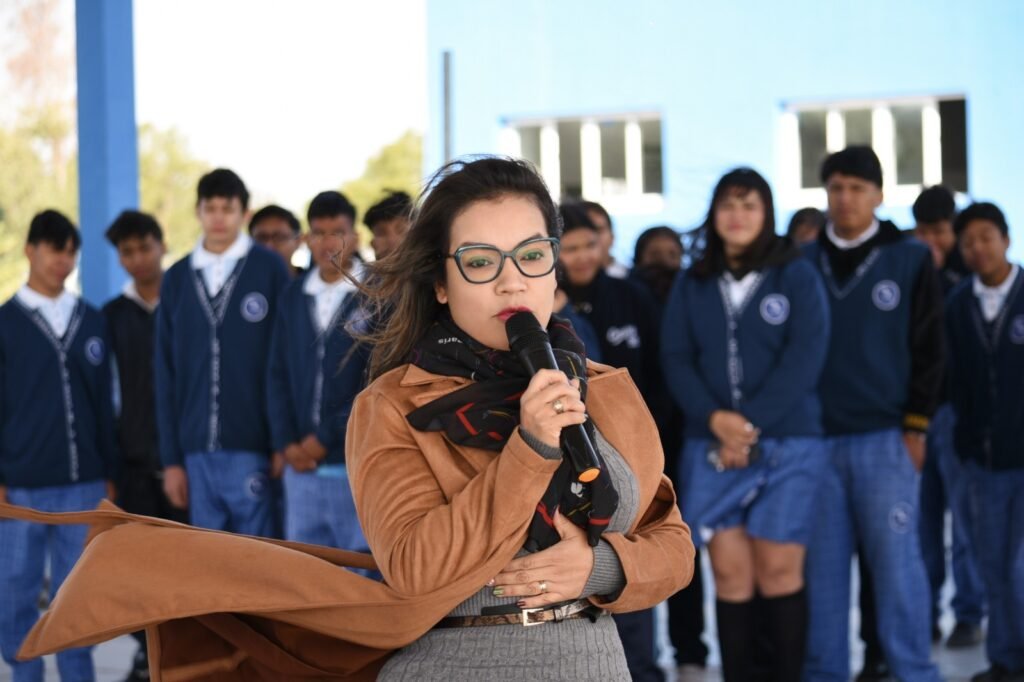 Durante su mensaje, la presidenta agradeció el recibimiento y destacó la importancia de fomentar en las juventudes el amor por la patria, los valores cívicos y la formación académica: