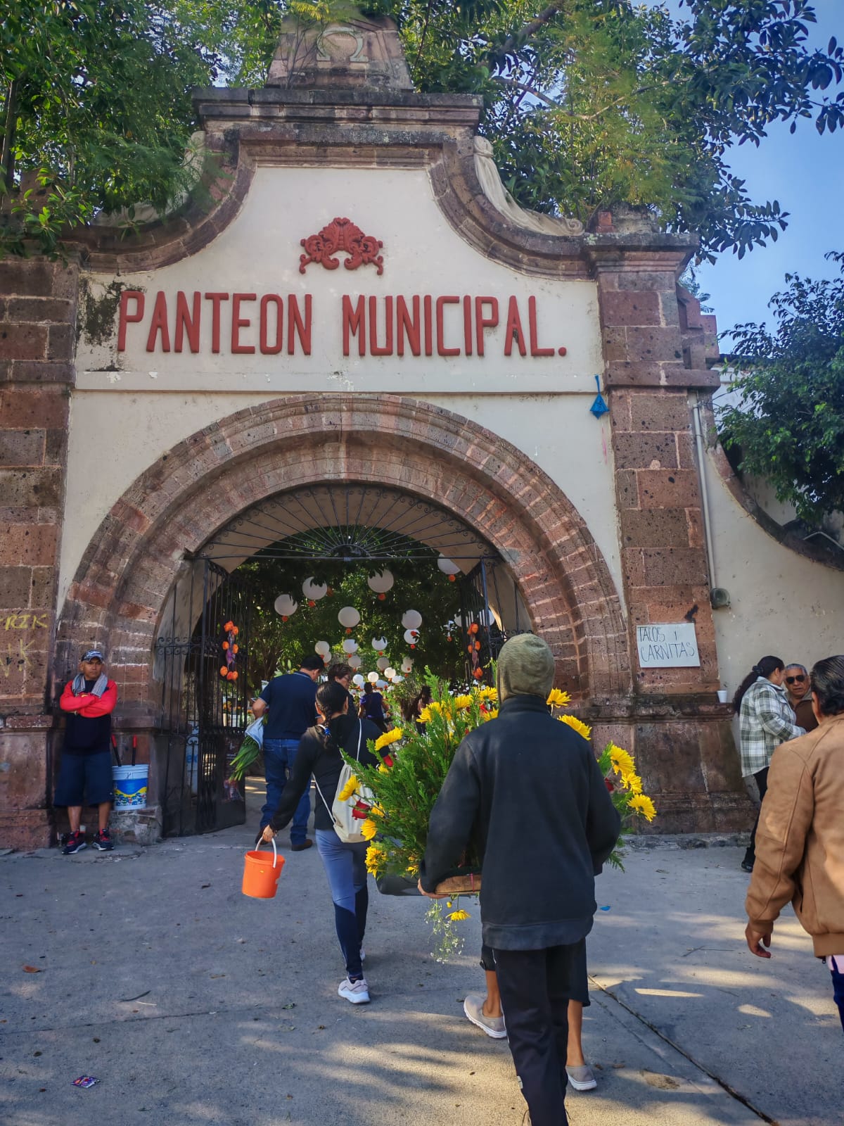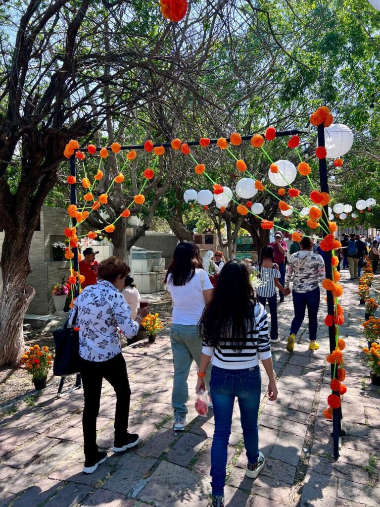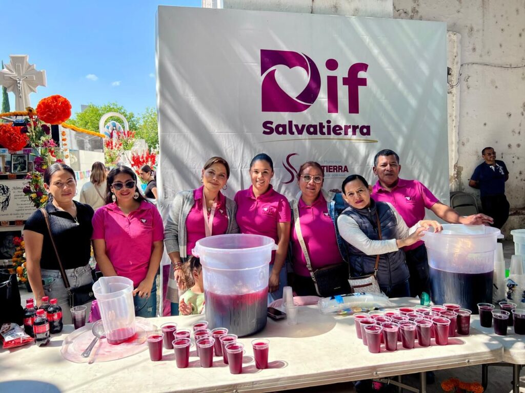 El domingo 2 de noviembre, la Presidenta del Sistema DIF Municipal, María Teresa Cerda Rosas, junto con su equipo de trabajo, estuvo entregando bebidas hidratantes a los asistentes para aminorar el calor de la mañana, y así tuvieran una estancia más cómoda para rendir tributo a sus seres queridos.