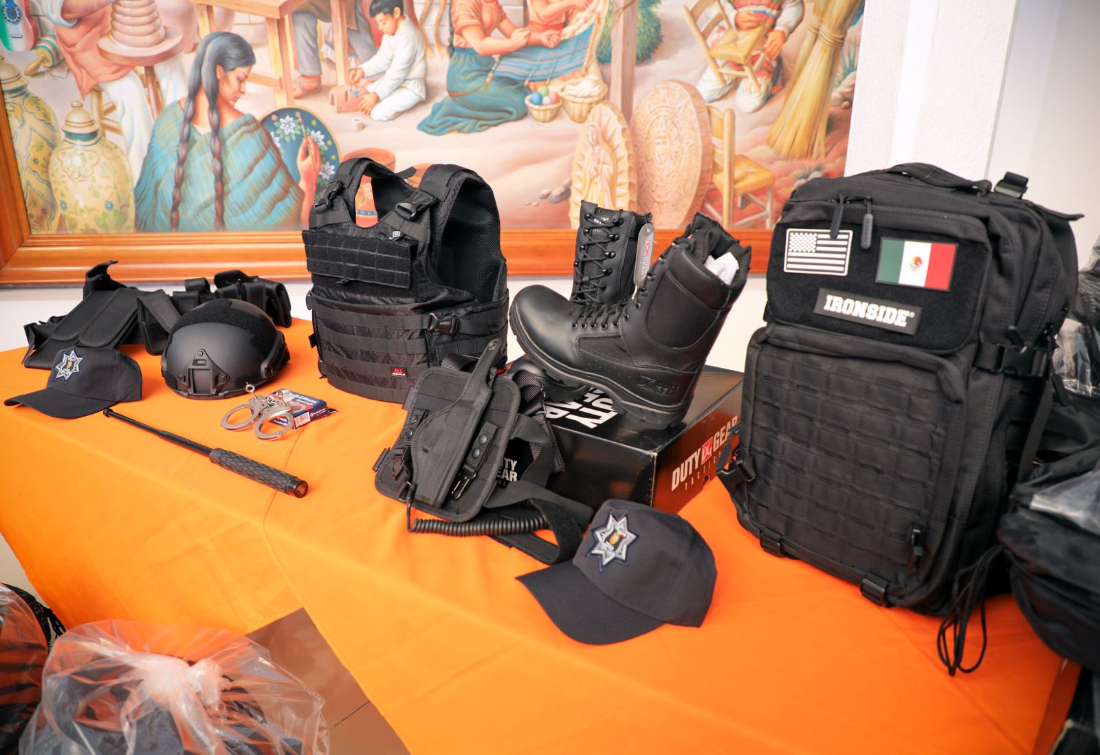 Para reforzar la operatividad y la protección de los elmentos en el cumplimiento de su deber, se hizo entrega de un paquete completo de equipo táctico y uniformes que incluye: