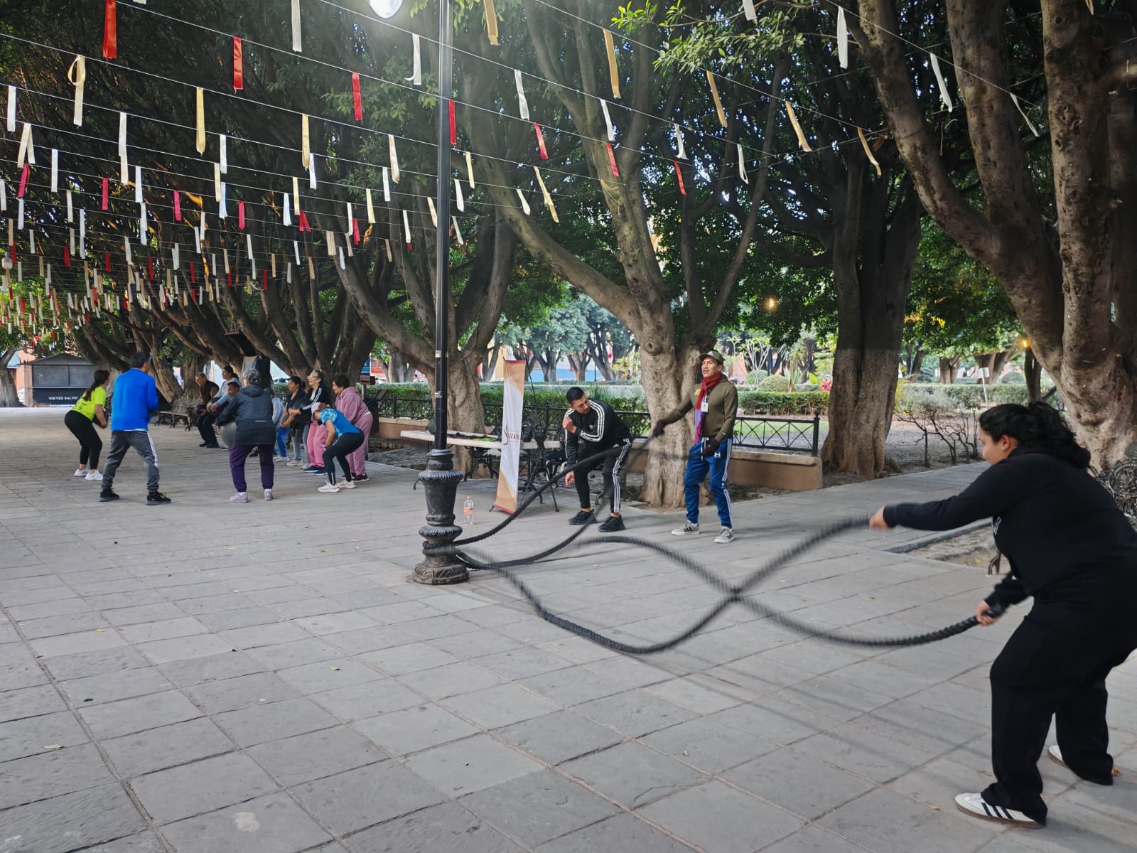 La activación fue impartida por la maestra Mariana Solache Nieto en un horario de 7:00 a 8:00 de la mañana, donde personas que regularmente acuden a caminar, trotar o ejercitarse participaron en diversas dinámicas que incluyeron ejercicios de calentamiento, sesiones de aerobics, caminata y rutinas con material deportivo como polainas, mancuernas, balones de azote, pelotas medicinales y ligas de resistencia, promoviendo la participación activa de la ciudadanía.