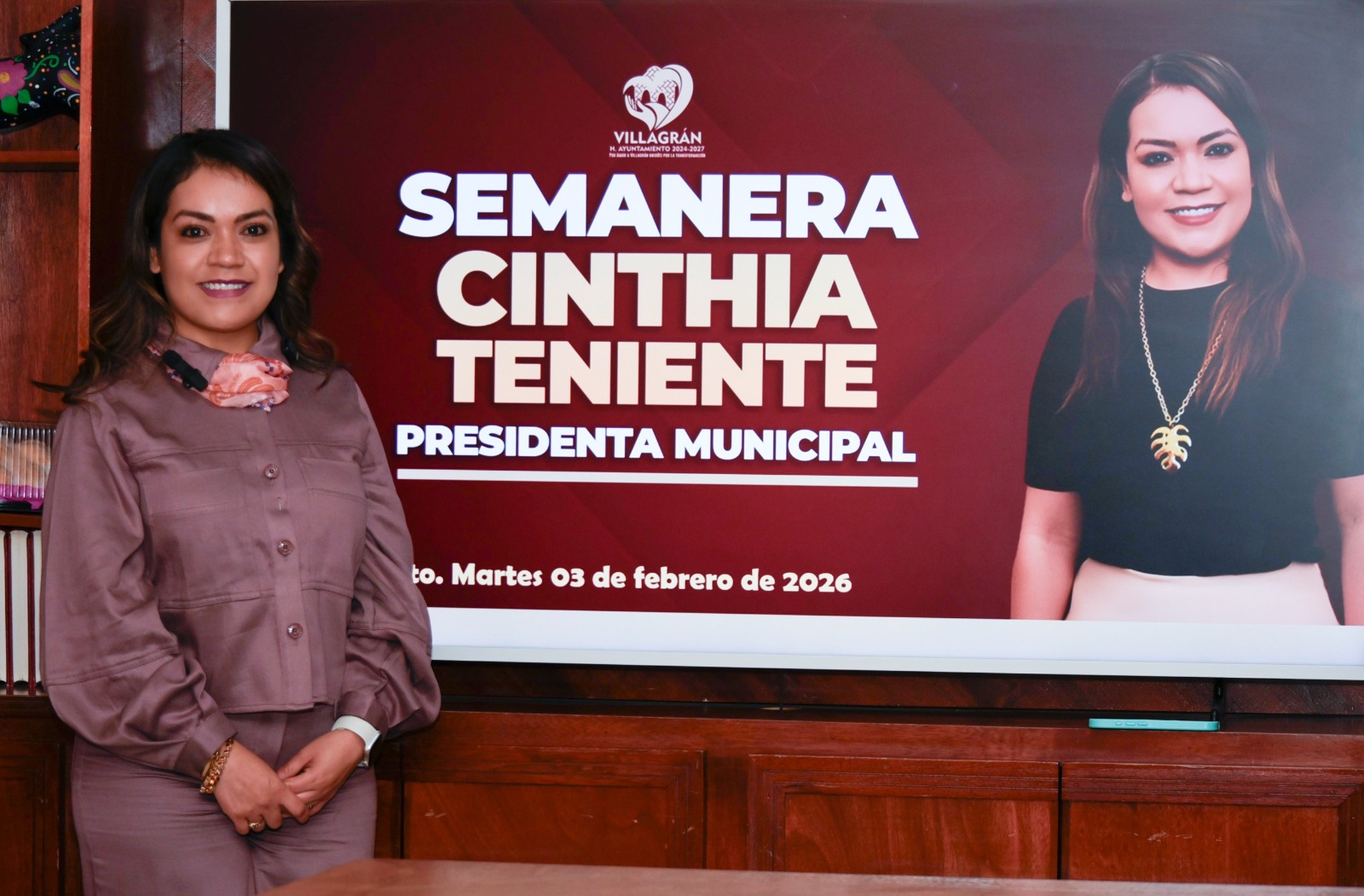 Se llevó a cabo la primera semanera del año 2026 con el objetivo de rendir cuentas a la ciudadanía de Villagrán, en la cual la presidenta municipal, Cinthia Teniente Mendoza, junto a directores de su administración, dio a conocer los primeros resultados del año, así como los proyectos que se tienen encaminados y el trabajo continuo que se realiza en beneficio de las y los villagranenses.