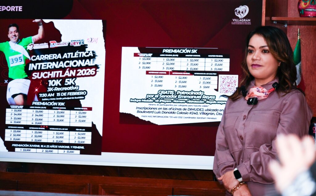 Por parte del área de Deportes, se hizo la invitación a la ciudadanía de Villagrán y municipios aledaños a participar en la Carrera Atlética Internacional que se desarrollará el domingo 15 de febrero, en conmemoración del Carnaval de Suchitlán, en la cual ya se han inscrito más de 500 personas. Este evento cuenta con el patrocinio del senador Emmanuel Reyes, así como de algunas empresas, y se otorgará premiación al primero, segundo y tercer lugar en distintas categorías, de 10, 5 y 3 km.