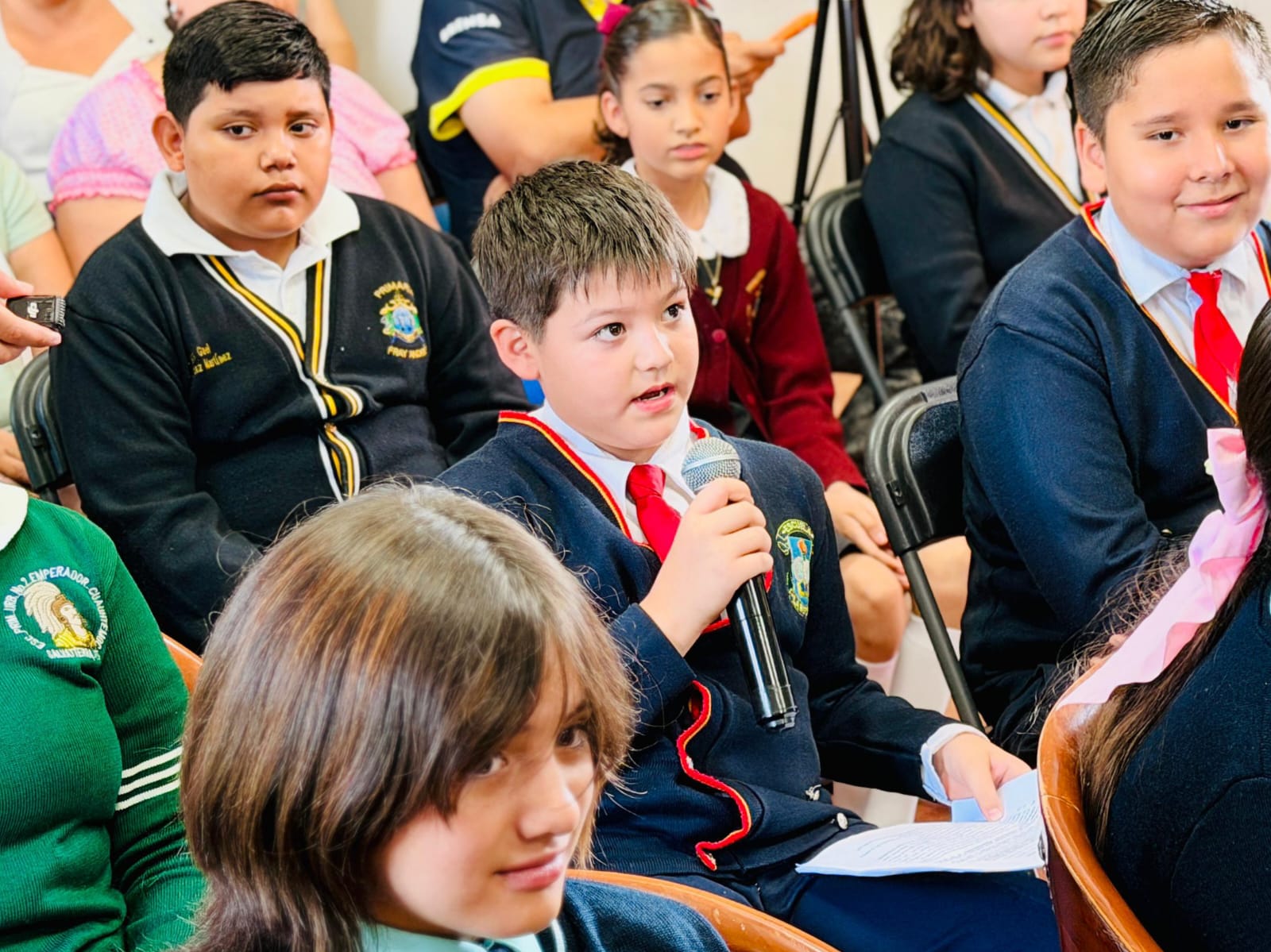 Durante el encuentro, el mandatario municipal interactuó en un diálogo abierto con las y los estudiantes, agradeciéndoles su participación y aportes, y tomó nota sobre varias propuestas. Además, las titulares de Derechos Humanos, Paola Cruz Arreguín y de Desarrollo Urbano y Medio Ambiente, Fabiola Abonce Villagómez, compartieron información sobre los derechos de la niñez, la importancia del cuidado del entorno y el uso responsable de los recursos naturales.
