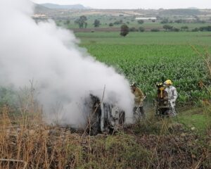 Acámbaro-Tarimoro.- La tarde de este miércoles se registró un accidente de tránsito tipo volcadura, en la carretera Estatal Acámbaro – Tarimoro, la unidad se encontraba fuera del camino en llamas. …