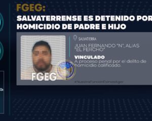 SALVATIERRA.- Detienen al ”Fercho”, presunto culpable del asesinato de Jesús Manuel “N” y J. Jesús “N”, quienes se encontraban en su domicilio ubicado en la calle Héroes de Nacozari en …